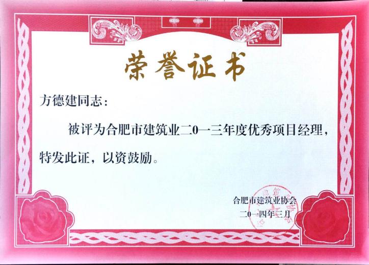 >2013年度优异项目司理方德建