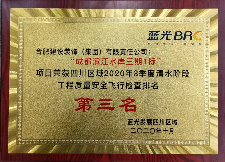 >滨江水岸获蓝光生长四川区域2020年3季度飞检第三名