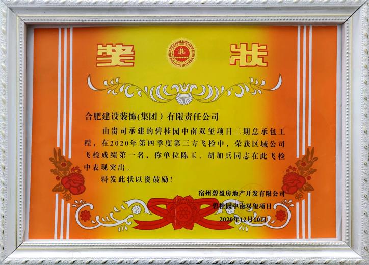 >碧桂园中南双玺或2020年4季度飞检第一名