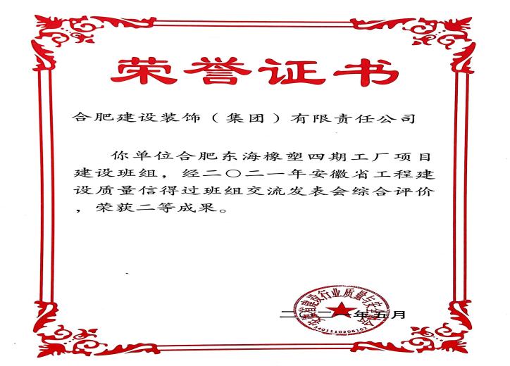 >东海像塑四期 安徽工程建设质量信得过班组交流揭晓会综合评价二等奖