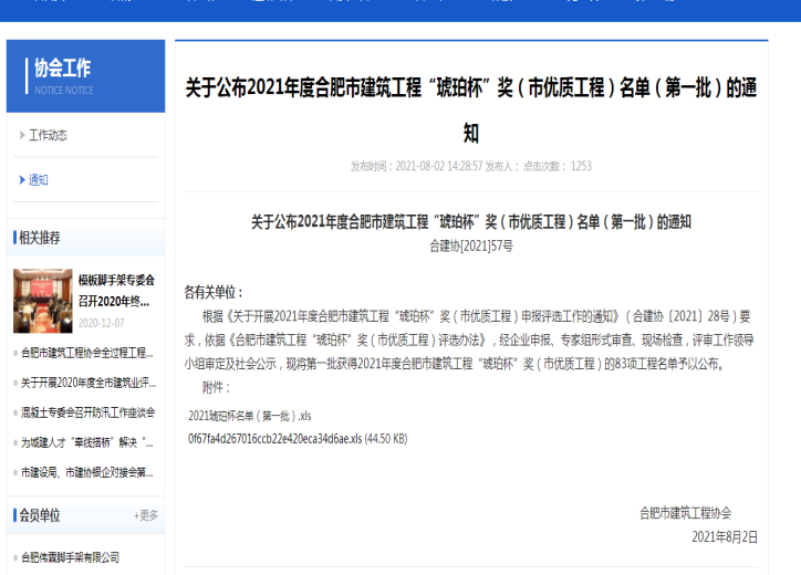 2021年度合肥市修建工程“琥珀杯”奖(市优质工程)