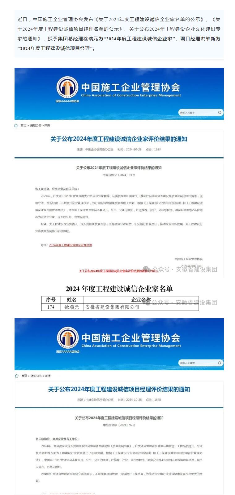 >集团员工获中国施工企业治理协会多项声誉表扬